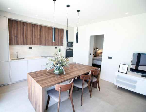 NEW BUILD RESIDENTIAL COMPLEX IN TORRE DE LA HORADADA New Build residential complex of bungalow apartments with communal pool in Torre de la Horadada located 800m from the beach. All properties has 3 bedrooms, 2 bathrooms, open plan kitchen with the lounge area, fitted wardrobes and terrace. All properties has private gardens and parking space. Plus bungalows on the top floor has private solarium. Torre de la Horadada is located south of Alicante in a beautiful location on the coast. The beautiful beaches of Torre de la Horadada and Mil Palmeras have fine sand beautiful promenade. There are lots of restaurants, bars and shops, also water sports, diving and snorkelling. It is well connected just 40 minutes from Alicante and Murcias Corvera airports, with large commercial shopping centres and multiple golf courses all within easy reach.