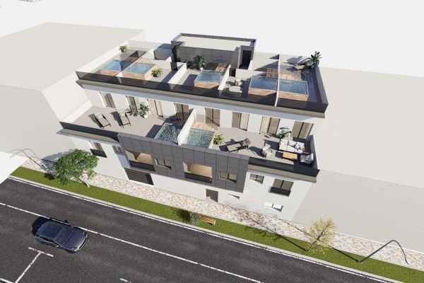 New Build Apartments in Pilar de la Horadada with private Jacuzzi Prime Location in the Heart of Pilar de la Horadada Located in the vibrant center of Pilar de la Horadada, Alicante, this exclusive new development offers an unbeatable combination of modern living and Mediterranean charm. Pilar de la Horadada is a picturesque Spanish town in the southernmost part of Costa Blanca, known for its welcoming community, charming plazas, and proximity to stunning beaches. Apartment Options and Features The residential complex consists of seven meticulously designed apartments, offering a range of layouts to suit diverse needs: Ground Floor: A spacious 3-bedroom apartment including a private rooftop solarium. First Floor: Four apartments featuring 1 or 2 bedrooms, each with individual solariums. Penthouses: Two exclusive 3-bedroom apartments with expansive private terraces. All apartments boast high-end finishes, including: Fully equipped kitchens with modern appliances. Pre-installed ducted air conditioning for your convenience. Aluminum exterior carpentry with thermal break for enhanced insulation. Double glazing (4+14+4 Climalit or similar) for energy efficiency. Stylish bathrooms with suspended WC (Roca Gap or similar), rain-effect showers, and included mirrors and enclosures. Private jacuzzis for each house, perfect for relaxation. Additional Amenities for Elevated Living The development offers: A parking space for each apartment located on the ground floor. An elevator providing access from the ground floor to the solarium level. A summer kitchen in each solarium, ideal for outdoor entertaining. Convenient Access to Key Points of Interest This location provides easy access to essential amenities and attractions: Beaches: The sandy shores of Torre de la Horadada and Mil Palmeras are just 3 km away, a 5-minute drive or a scenic bike ride. Golf Courses: The nearest golf course is 8 km away, perfect for golf enthusiasts. Shopping Centers: Zenia Boulevard, one of the largest shopping malls in the area, is 12 km away. Airports: Corvera (Murcia) Airport is 40 minutes (40 km), and Alicante Airport is 55 minutes (55 km) by car. Discover the Mediterranean Lifestyle Pilar de la Horadada combines the tranquility of a coastal town with the convenience of modern living, offering supermarkets, restaurants, bars, and vibrant plazas within walking distance. Schedule Your Visit Today Don’t miss the opportunity to own your dream home in this sought-after area of Costa Blanca. Contact us now to arrange a viewing or for more information!