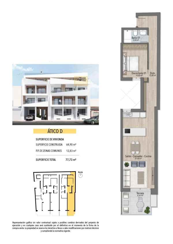 Modern Apartments Just 250m from El Cura Beach in Torrevieja New Development in Prime Location This newly built apartment building is located just 250 meters from the famous El Cura Beach in Torrevieja, offering residents easy access to one of the most popular beaches in the area. The building consists of 17 units, featuring 1 and 2-bedroom apartments, each with 1 or 2 bathrooms. Additionally, there are penthouses available with private solariums and stunning sea views, perfect for enjoying the Mediterranean lifestyle. Premium Amenities for Relaxation Residents can take advantage of the rooftop community pool and solarium, ideal for unwinding after a day at the beach. The building also offers optional underground parking spaces and storage rooms, available for an additional cost, providing extra convenience and security for residents. Vibrant City Life in Torrevieja Torrevieja is a lively city known for its year-round cultural and recreational activities, making it a great destination for both permanent residents and vacationers. With a mild climate and over 300 days of sunshine annually, the area is perfect for those who enjoy outdoor activities and beach life. Ideal Location with Easy Access to Points of Interest This property is ideally located close to all essential services, including supermarkets, restaurants, and entertainment venues. Major points of interest are easily accessible: Alicante Airport is just 45 km away. Several Golf Courses within 7-10 km. Zenia Boulevard Shopping Center is only 8 km away. The port of Torrevieja is just 2 km from the building. Enjoy modern living by the sea in a vibrant and well-connected area with everything you need just a short distance away.