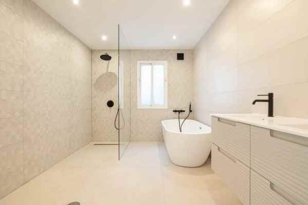 The master bedroom is spacious and has a separate dressing room with plenty of hanging space for clothes. The master bathroom is fully modernised & has a very large double shower plus a bath & double wash basins. The 2nd bedroom also benefits from a modern en-suite bathroom with bath tub. The other 2 bedrooms share a large bathroom with a bathtub shower and separate shower.
