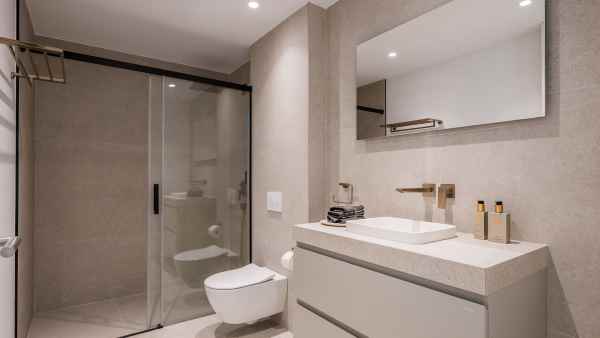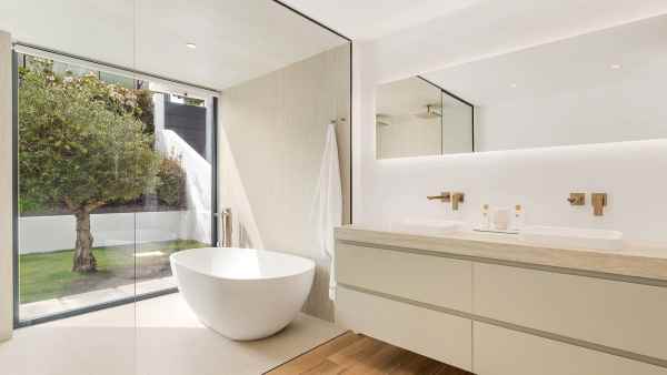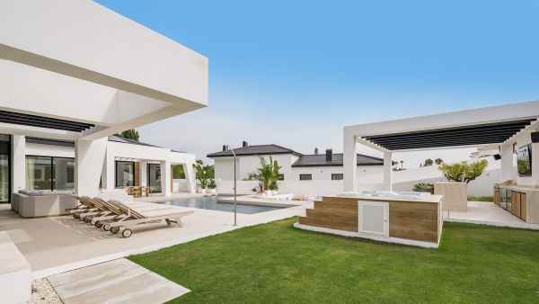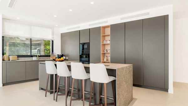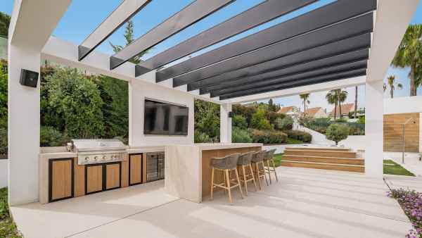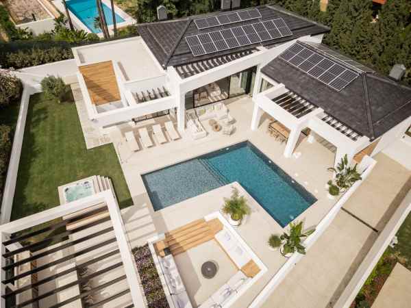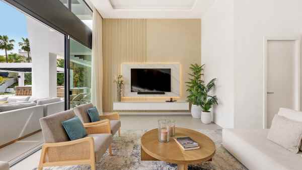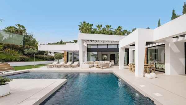 The villa is built mainly all on one level plus lower level, quite rare to find on the market. It has a fresh, modern feel throughout. Decorated in a soft, neutral palette, it feels relaxed, luminous and welcoming.