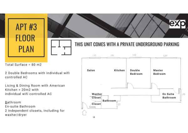 The apartment has top quality double glazing throughout, hot and cold A/C with WiFi (turn it on when on your way home!) in the lounge and both bedrooms, high quality laminate flooring and a private garage parking place with lift access