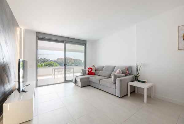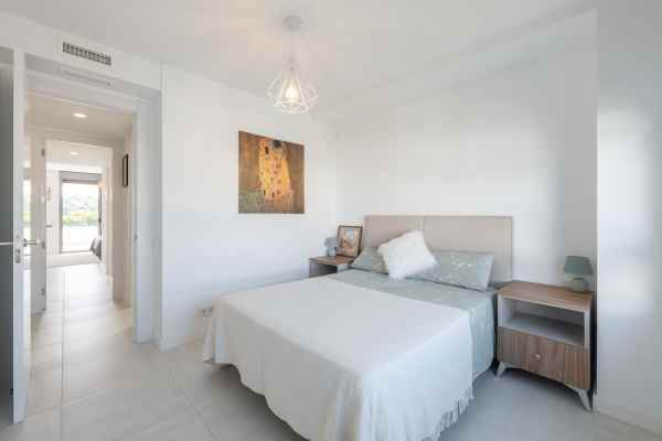 The apartment features a modern open-plan layout with a spacious living room that leads to a private terrace overlooking the garden. The interior is designed with natural light in mind, featuring large windows and neutral finishes that enhance the sense of space. The kitchen is fully equipped with quality appliances and integrated into the living area for a seamless flow. Two comfortable bedrooms and two bathrooms, including one en-suite, make the apartment suitable for permanent living or as a holiday residence.