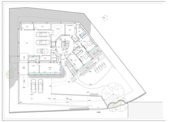 The entrance level consists of a private, self-contained 1-bedroom apartment, 2 guest bedrooms with en-suite bathrooms, and an office space. There's a 4-car garage with an electric car charging point, 2 large storage rooms, and a technical room housing all the villa's machinery.