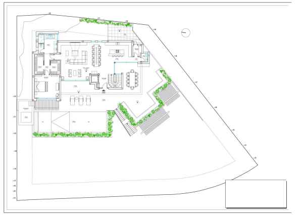 Access to the superior level is via a unique spiral staircase or an elevator with a 4-person capacity. This level opens into a spacious open-plan living, dining, and kitchen area that leads out to a partially covered terrace, heated pool, and outdoor kitchen. The entire exterior terrace is designed as a "floating terrace," allowing rainwater to flow beneath the surface and be collected in a water reservoir for reuse in irrigation.