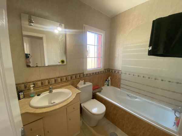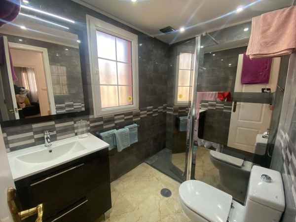 This is a fantastic semi detached villa in the heart of Villamartin. This property has been recently renovated to a high standard and comes complete with an amazing underbuild which is an open plan lounge and kitchen dining area with a walk in shower room. This semi detached has a fantastic large corner garden which comes complete whith a large wooden outhouse. On entry to this villa you will access a double door entry and has an alarm system, the lounge is a fantastic lounge and dining area with a wc on this level plus a fitted kitchen which is seperate, there are sliding doors seperating the lounge to the second level where you have 3 double bedrooms with a full bathroom and also 1 bedroom has an en-suite plus you also have internal access to a private solarium. This is a proper family home and must be seen to understand its full potential.