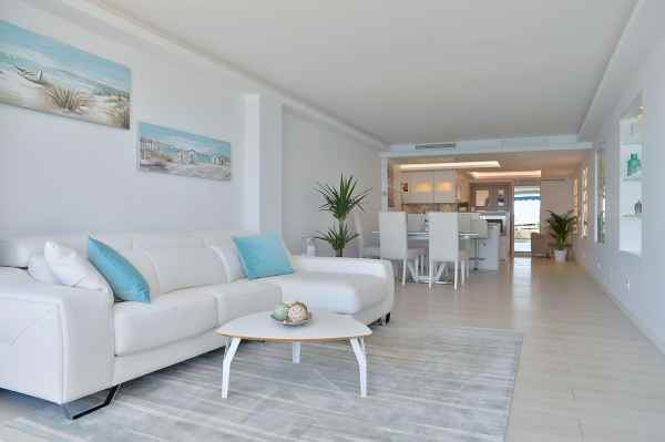 A truly luxurious apartment located on the first line of the beach in the charming old town district of Fuengirola. This spacious and bright apartment offers not one, but two terraces! One terrace provides breathtaking 180° panoramic sea views, while the other faces southwest, ensuring you can bask in the afternoon and evening sun with lovely views of Plaza Picasso and the surrounding mountains.
