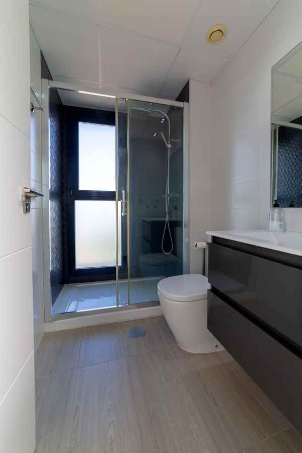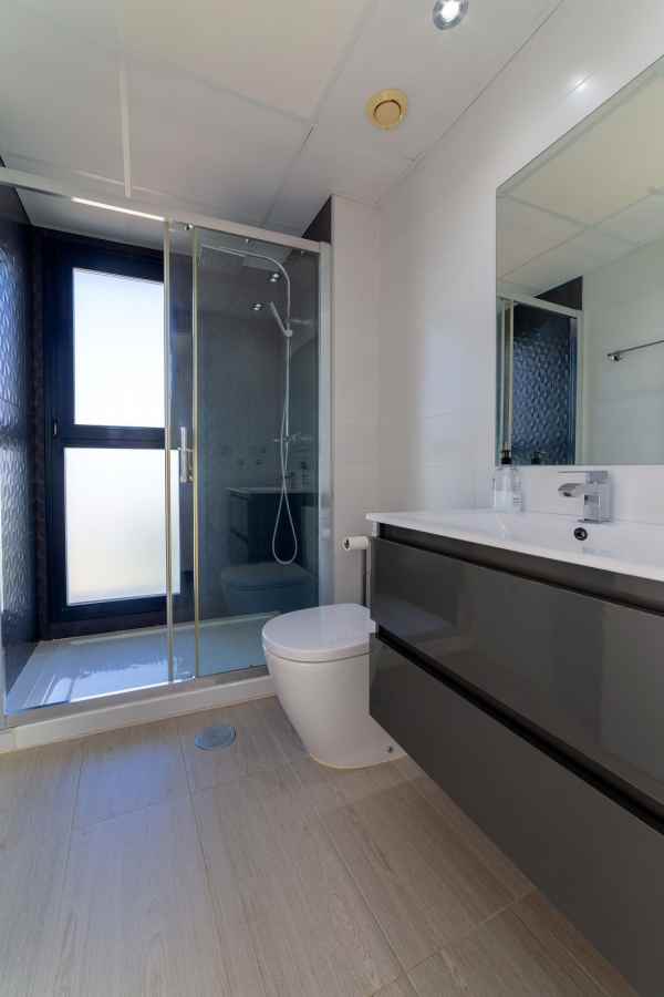 The villa offers three spacious bedrooms, of which the large master bedroom on the upper floor is something out of the ordinary. From here you reach a large private terrace, ideal for morning coffee, sunbathing or a glass of wine in the evening sun. The home also has two elegant bathrooms with modern materials and a high standard.