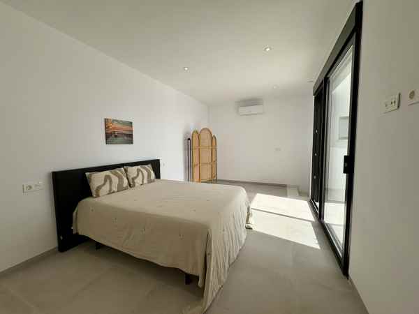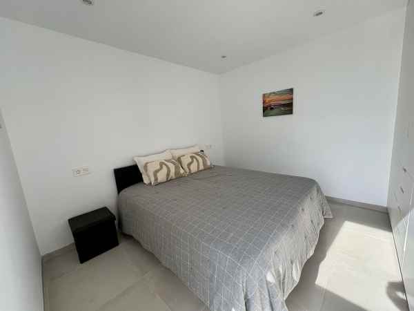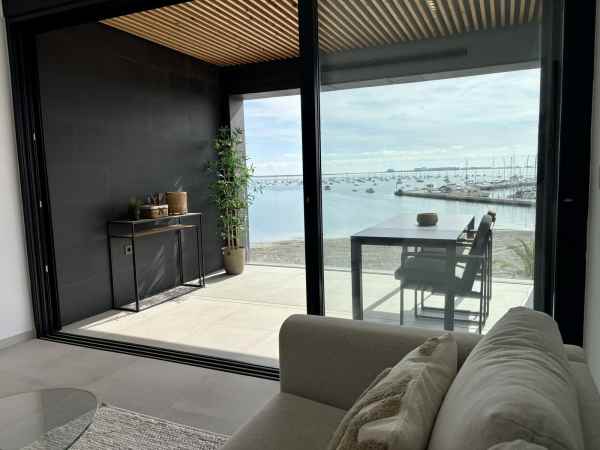 On the main floor, you’ll find a stylish living room with an open-plan kitchen, creating a bright and social atmosphere. From here, you have direct access to a balcony/terrace of approximately 9.4 m² with sea views – perfect for breakfast or a morning coffee in the sun.