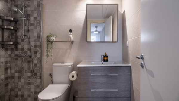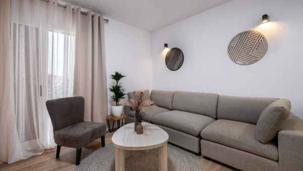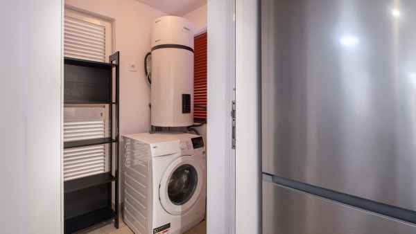 Stylish renovated ground-floor apartment with a well-planned layout and high quality finishes. Bright open plan kitchen and living area equipped with new appliances, dishwasher, and washing machine. Three spacious bedrooms and two modern bathrooms, one of which is en-suite to the master bedroom. Separate laundry room. Private parking right by the entrance and two locked storage units next to the apartment provide both convenience and extra storage.