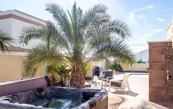 Outside, the property features two large terraces , a private 10 x 4.5 meter swimming pool , a jacuzzi , and an outdoor hot shower . There is also a covered carport , ideal for protecting the car from the sun.