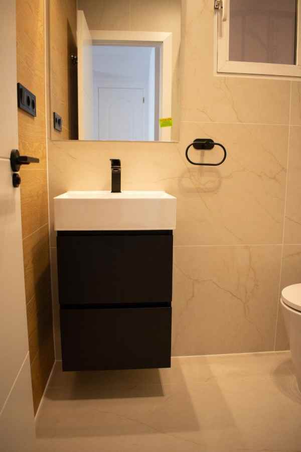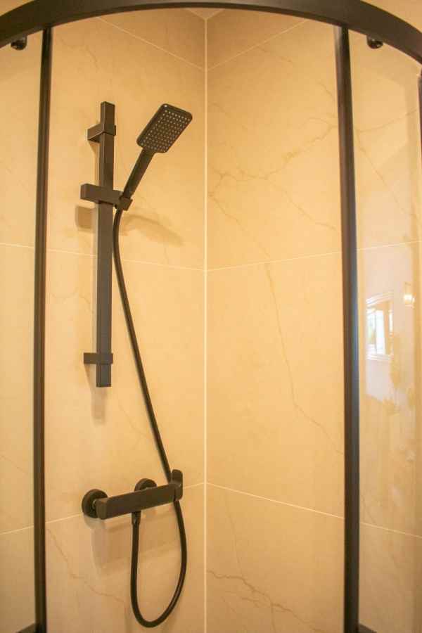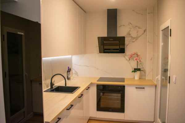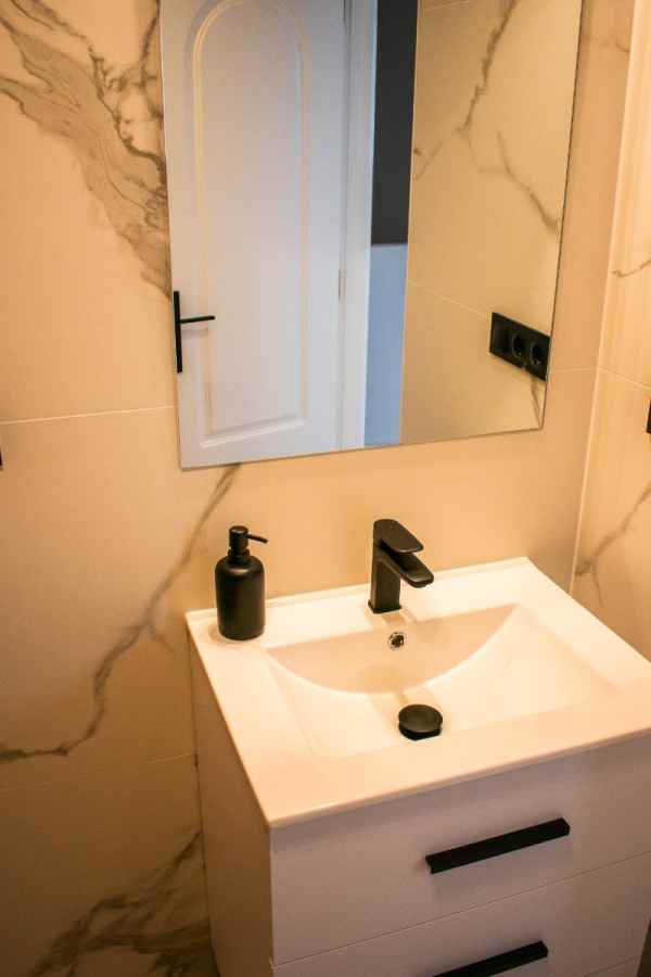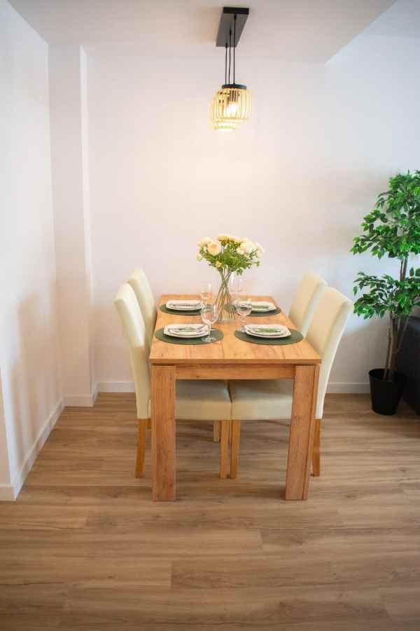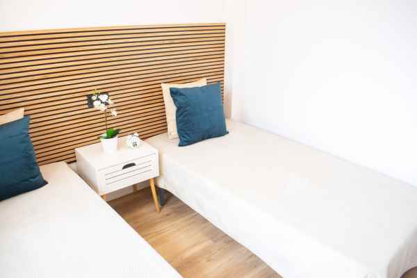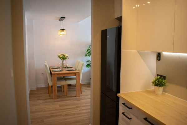 With three bedrooms (two upstairs and one downstairs) and two bathrooms, this townhouse offers functional and well-organized spaces. Downstairs, there is a spacious and comfortable living room with a sofa bed, air conditioning, and a large dining table . The modern kitchen is fully equipped with new appliances and ample cupboards . There is also a double bedroom , a bathroom with a modern shower , a utility room , and a storage room .