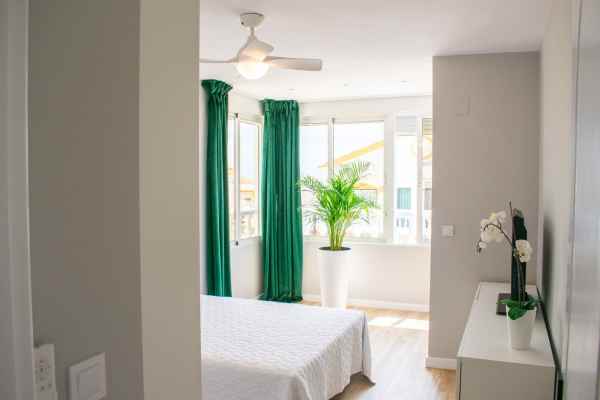 Upstairs is the bright master bedroom , equipped with a work area , double bed , built-in wardrobes, and air conditioning. The third bedroom has two single beds , sea views, air conditioning, and a wardrobe. The second bathroom features a spacious shower and elegant finishes.