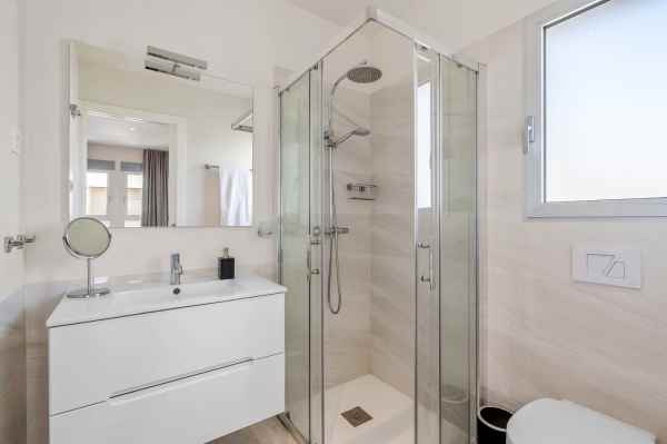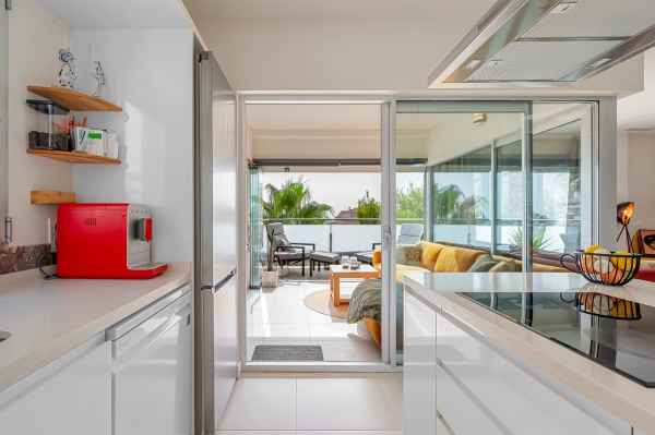 Enjoy a smart and practical floor plan with a bright living space extended by a glazed terrace — perfect as an additional lounge or dining area. From here, you can take in the beautiful views towards the Mediterranean Sea. The apartment is located on the third floor.