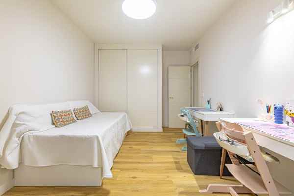 It has three spacious bedrooms, the master bedroom being a true suite with a private bathroom, office area and dressing room. One of the additional bedrooms includes an enclosed terrace converted into a games room, and the property also has two full bathrooms.