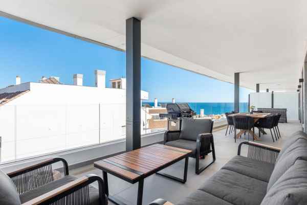 The open-plan layout allows natural light to flow throughout, connecting the living room, dining area, and kitchen into one inviting social space. From the spacious terrace, you can enjoy breathtaking views of both the coastline with the city of Fuengirola and even more important the Mediterranean Sea — the ideal spot for a morning coffee or to unwind as the sun sets over the coast.