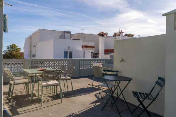 The apartment offers three bedrooms and two bathrooms with shower. The fully fitted kitchen, rich in character and charm, is ideal for everyday cooking. The cozy living room has stairs leading to the private solarium, which offers an idyllic setting for sunbathing, relaxing, or enjoying al fresco meals.