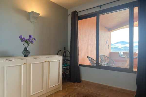 It is 144 m² and has a total of 52 m² of terraces split into two areas: the front terrace has open sea views, while the rear terrace looks straight onto the mountains and is fully covered, making it usable year-round. Part of the front terrace is also covered.