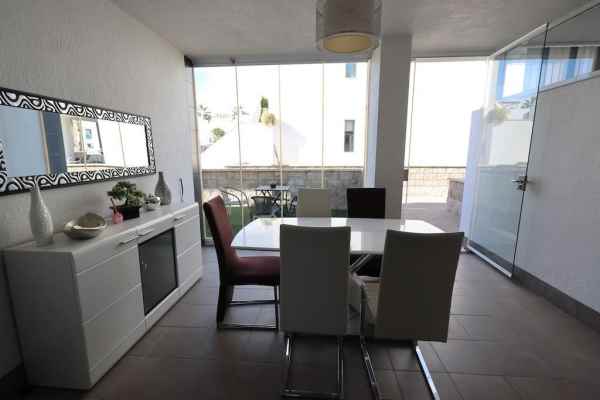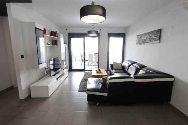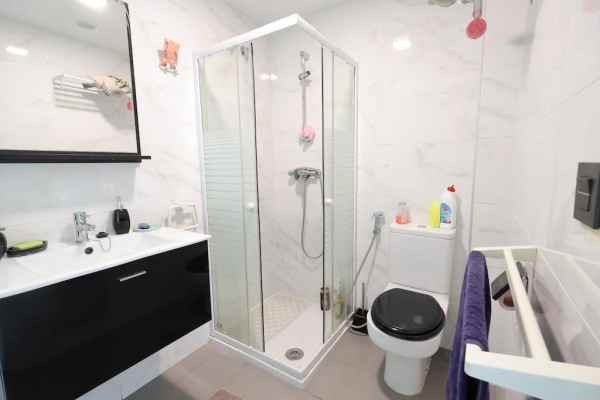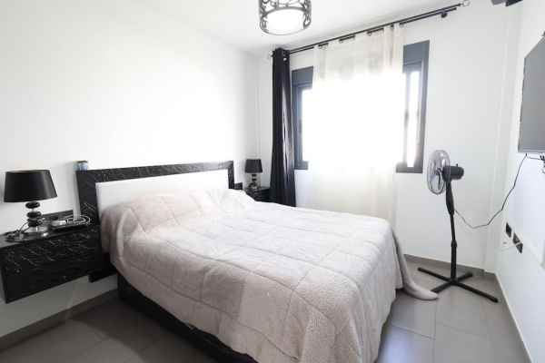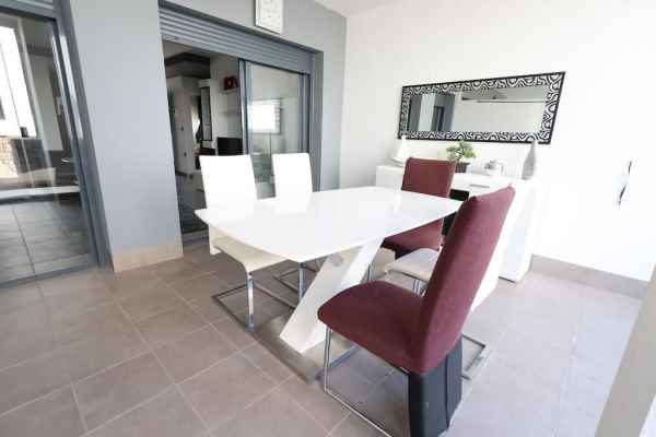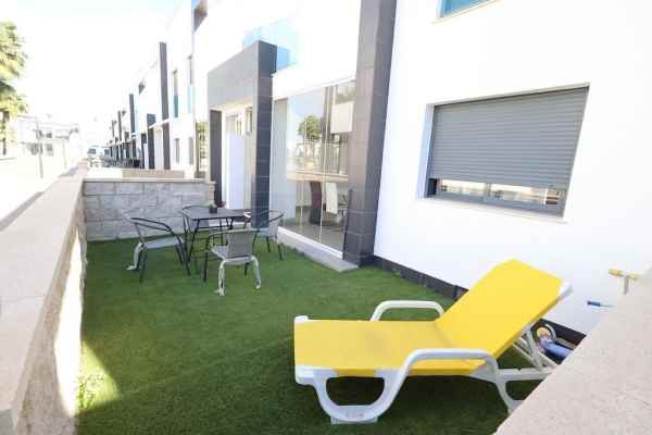 Ground-floor bungalow with two gardens: one measuring 13 m2 with direct access to the communal swimming pool area, and another of 6 m2 at the back of the property.. The home offers 77 m2 distributed into 2 bedrooms, 2 bathrooms, an open-plan kitchen connected to the living-dining area, and a glazed terrace.. . It is sold fully furnished and equipped with air conditioning. An outdoor parking space is included.. The residential complex features large green areas, a children’s play area, and is located next to the Zenia Boulevard shopping centre.