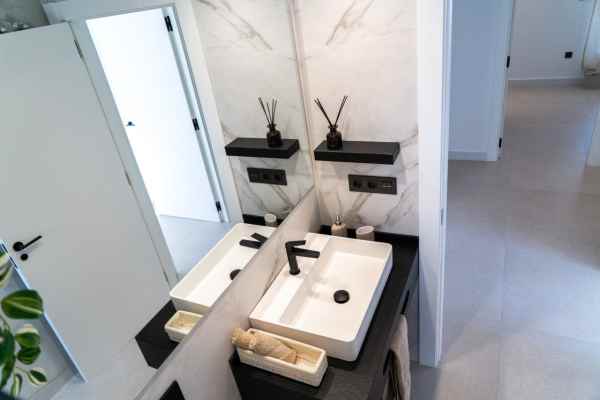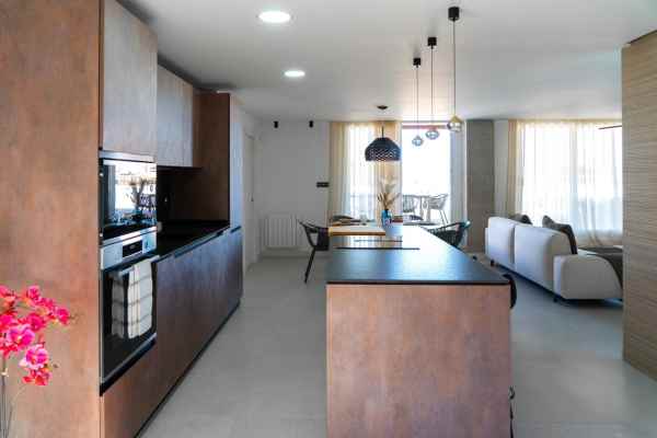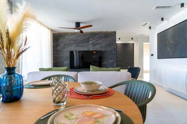 The interior stands out for its elegant and functional style: a fully equipped Italian designer kitchen with appliances, three bedrooms and three full bathrooms (one en suite), as well as ducted air conditioning and blue heat heating throughout. High-end materials , such as Schüco windows and a security door with code access , guarantee maximum quality and comfort.