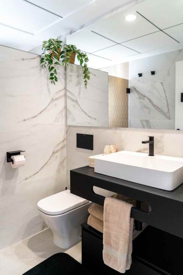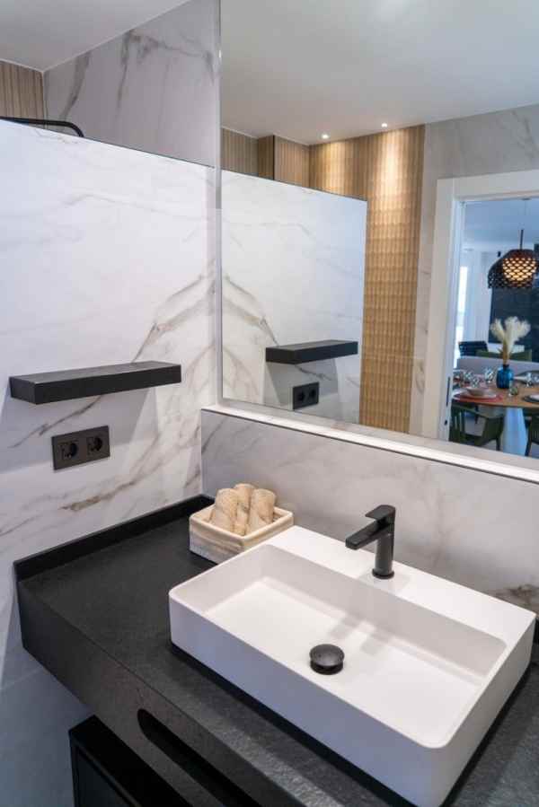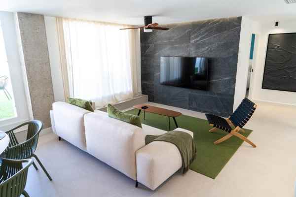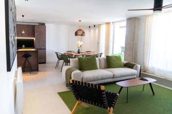 In the heart of La Zenia (Orihuela Costa) lies this luxurious 122 m² apartment that combines privacy, contemporary design, and Mediterranean comfort . Located on the first floor of a building with only two apartments and an elevator , it offers the tranquility of a penthouse with no neighbors above. Its impressive 250 m² private terrace , complete with a barbecue area, covered porch, artificial grass, and ample seating, transforms this home into a true outdoor retreat, ideal for enjoying the sun year-round.