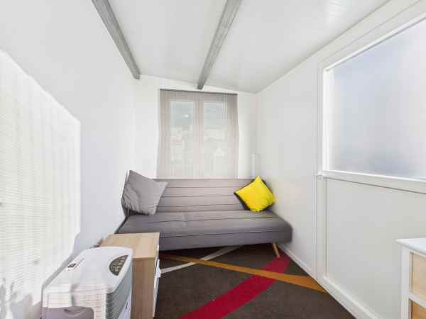 The community offers a shared swimming pool, well-maintained communal gardens, and the ease of minimal-maintenance outdoor areas. Parking is available on the street.