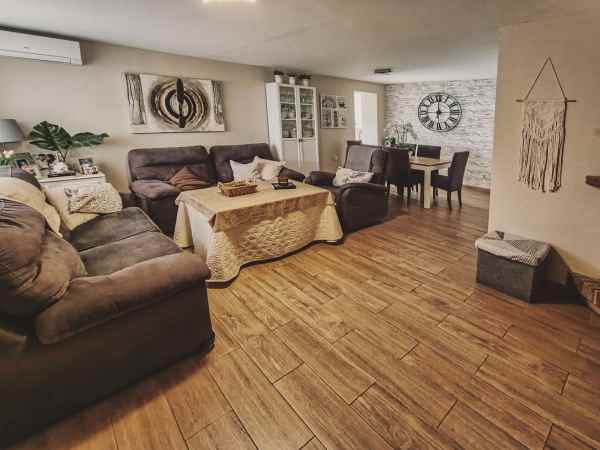 The home features three spacious bedrooms, including a master bedroom with a walk-in closet and a generously sized shoe rack. The cozy and bright living and dining room is equipped with a fireplace and air conditioning, creating the perfect atmosphere for relaxation. The fully equipped kitchen offers direct access to a vast terrace, where you can enjoy unforgettable moments outdoors. The barbecue area and backyard add a special touch for your family and friends gatherings.