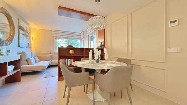 The apartment is sold fully furnished, equipped with high-quality furniture in harmonious tones and wooden details that add warmth and style. The layout is functional and comfortable, with spacious and well-utilized areas.