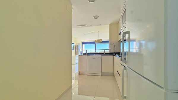 The property features 2 bedrooms and 2 bathrooms, designed in a modern and functional layout to ensure maximum comfort. From the bright living room, you access a charming 12 m² terrace, perfect for enjoying the sunrise and the sea breeze. The highlight of this penthouse is its spectacular private 83 m² solarium, equipped with a jacuzzi and relaxation areas—an authentic private oasis with endless sea views, ideal for enjoying the Mediterranean climate all year round.