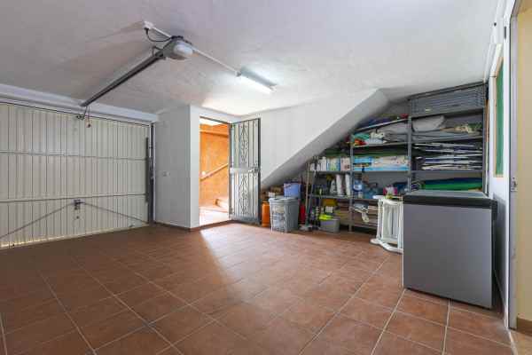 On the ground floor, there is a garage with storage and a utility room. Three bedrooms and a bathroom have also been built on this level.