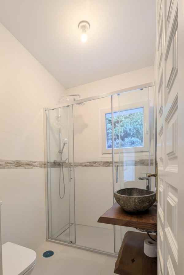 Upper Floor: A haven of tranquillity. It accommodates two additional bedrooms, a full bathroom, and a practical storage room, plus a covered terrace with potential views of the area.