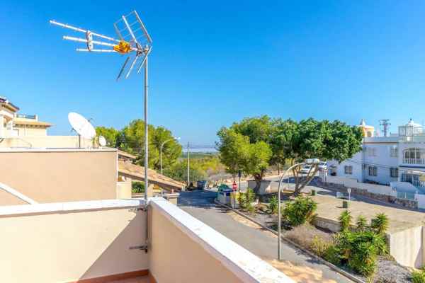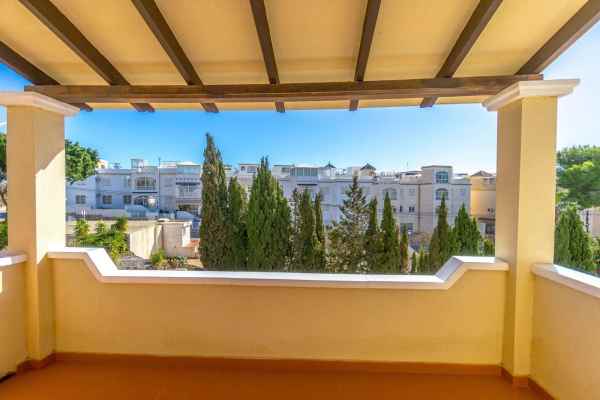 Villa with roof terrace, terrace and shared pool A warm welcome to this well-planned villa with an attractive location in Filipinas, Villamartin on the southern Costa Blanca. The villa consists of three bedrooms, a bathroom, a guest toilet, living room and kitchen as well as a patio on the ground floor, a large terrace and a good-sized roof terrace in a sunny position. In the communal area there is a swimming pool.