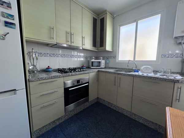 The property offers 3 bedrooms, 1 bathroom, a spacious living room with access to a large terrace boasting panoramic views of the sea and Gibraltar. It is sold fully furnished and includes a fully equipped kitchen with a laundry area.