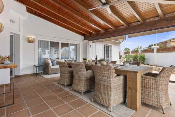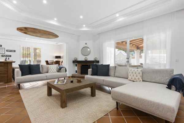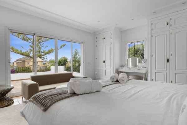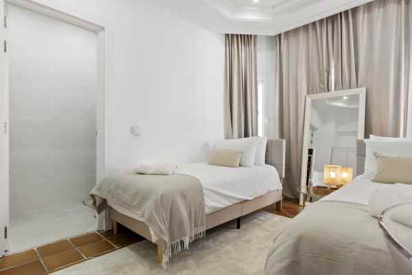 Nestled in the serene Las Chapas Playa, 300 meters from the sandy shores, awaits a stunning 5-bedroom, 6 bathroom villa. This idyllic property is conveniently situated just a 5-minute drive from Marbella Centre and a 40-minute journey from Malaga Airport, ensuring both accessibility and tranquility.