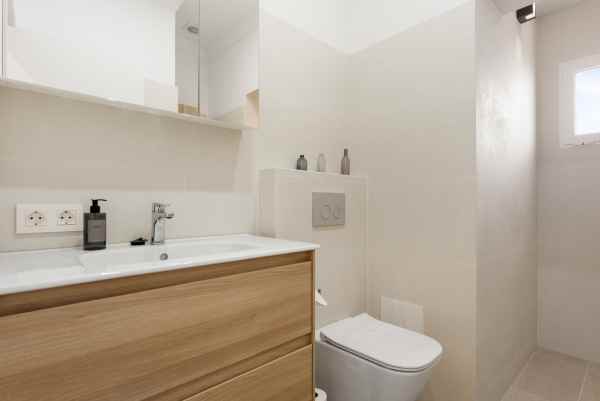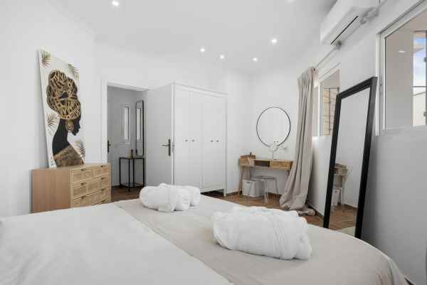 Behind the villa you find a secluded guest apartment complete with a living room, compact kitchen, a double bedroom, and a bathroom—providing an ideal sanctuary for additional privacy or visiting guests.