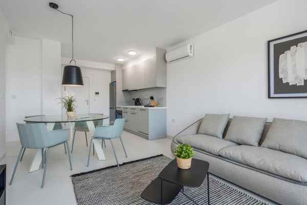 The property will be sold fully furnished and consists of a bright living/dining room, a fully equipped open plan kitchen, two bedrooms with fitted wardrobes, two bathrooms with underfloor heating, and a sunny terrace. Storage room and parking space in the underground garage is also included in the price.