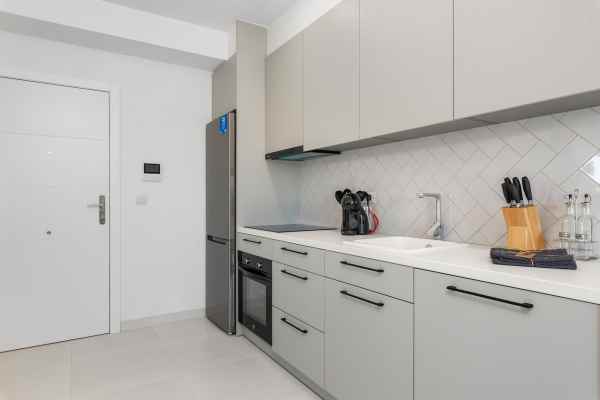 The property will be sold fully furnished and consists of a bright living/dining room, a fully equipped open plan kitchen, two bedrooms with fitted wardrobes, two bathrooms with underfloor heating, and a sunny terrace. Storage room and parking space in the underground garage is also included in the price.