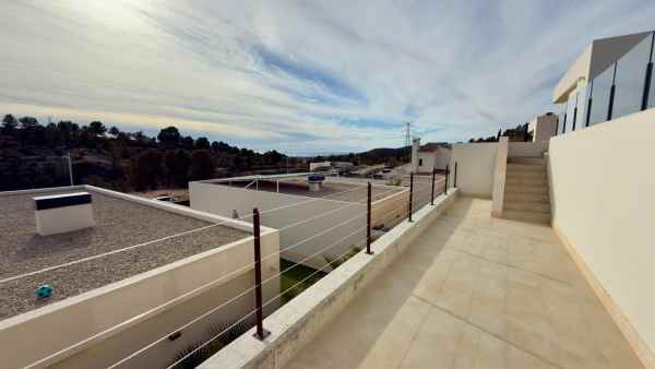 For sale: a modern villa built in 2025, located in the prestigious area of Finestrat. The property features a stylish contemporary design, high-quality materials, and is fully ready to move in with no additional investment required.The villa offers 3 spacious bedrooms, 2 bathrooms, a 300 m² plot, a private pool, a well-maintained garden, and parking for two cars. Large windows and the terrace provide stunning views of the sea and mountains, creating a perfect atmosphere for comfortable and peaceful living.The area boasts excellent infrastructure, including supermarkets, the La Marina shopping center, schools, restaurants, sports facilities, and golf courses, as well as great transport connections with quick access to Benidorm, Alicante, and the airport.An ideal option for both permanent living and a high-yield investment.