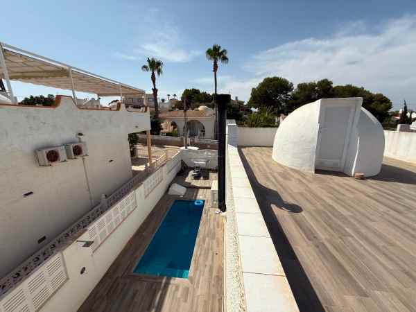 Beautiful, modernized detached villa with a solarium and open (sea) views, located in Las Filipinas, Villamartin (Orihuela Costa). The house is ideally and centrally located within walking distance of all kinds of facilities and necessities, the white sandy beaches that Orihuela Costa has to offer can be reached in no time by car. The house comes fully furnished and has 2 bedrooms with 2 en-suite bathrooms. For more information or a (video) viewing, please contact us as soon as possible!