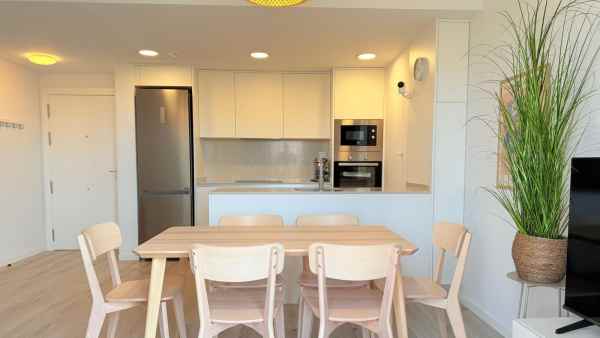 This elegant residence situated in the cherished city of Dénia, in the heart of the Costa Blanca, constitutes an outstanding real estate proposal for those looking to enjoy a privileged maritime environment or seek a secure investment in a high-demand area. The property, located on the third floor of a modern four-story building completed in 2025, combines contemporary architecture with a high standard of quality, offering a residential experience designed for comfort and daily functionality. With 57 m² of usable space and a total of 62 m² built, the home features two bright bedrooms, two fully equipped bathrooms, a spacious living area that harmoniously integrates with a contemporary open-plan kitchen, and a 6.84 m² terrace that invites you to enjoy the Mediterranean climate and the relaxed atmosphere characteristic of this coastal town. The interiors have been conceived to guarantee spaciousness, fluidity, and brightness, using high-quality materials that provide durability and aesthetics. Its strategic location—very close to the beach, the marina, shops, supermarkets, essential services, and a varied gastronomic offer—allows for taking full advantage of everything Dénia has to offer without the need for long commutes. Additionally, there is a comprehensive set of communal facilities that enhance the value of the residence, including a large pool complex with bathing areas for different ages and a relaxing jacuzzi, extensive meticulously maintained garden areas, spaces for relaxation and socializing, an indoor gym equipped for daily sports activities, a social club for gatherings or events, a multifunctional room adaptable to different needs, a storage room that provides additional storage capacity, and community parking that facilitates resident comfort. The costs associated with the property remain within a balanced structure, with an approximate IBI of 450 euros per year, a waste fee of around 120 euros annually, and community costs of approximately 1,200 euros. This combination of attributes makes this property a highly attractive choice for those looking to establish themselves permanently in an exceptional Mediterranean environment or for those wishing to acquire a real estate asset with excellent rental potential, offering an impeccable blend of quality, location, and lifestyle.
