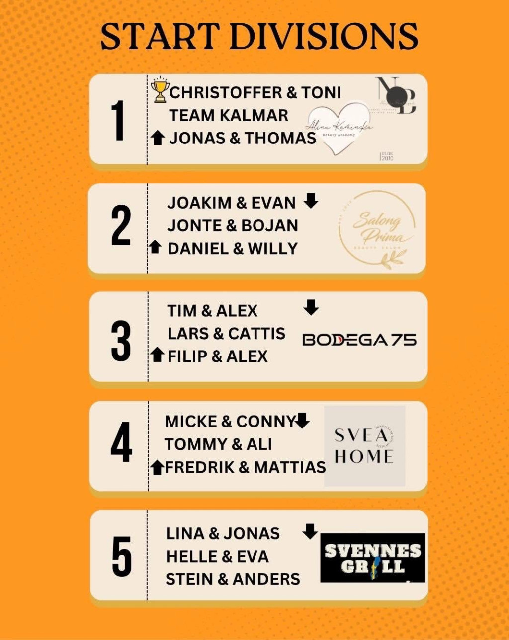 - The start divisions will be posted every week on Orange Padel’s instagram. There you can see the results from all divisions.