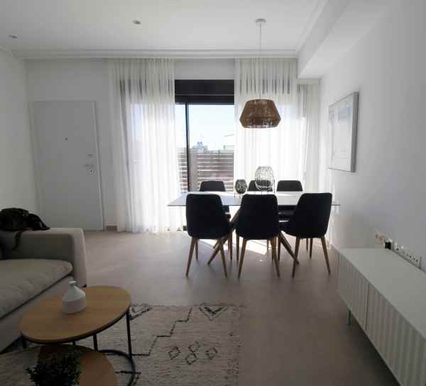 NYBYGGDA RADHUS I PILAR DE LA HORADADA Nya moderna radhus byggda i en lugn del av Pilar de la Horadada med närhet till allt du behöver. Radhusen har 4 sovrum, 2 badrum, öppet kök, vardagsrum med direkt tillgång till det mysiga poolområdet, terrass på baksidan med parkeringsplats , terrass och stort solarium på taket. Pilar de la Horadada är en typisk spansk by i den sydligaste delen av Costa Blanca. På den stora huvudgatan finns stormarknader, massor av butiker, restauranger och barer och några vackra torg. De vackra stränderna Torre de la Horadada och Mil Palmeras med fin sand och strandpromenad ligger bara 5 minuter bort. Flygplatserna Corvera (Murcia) och Alicante ligger 40 respektive 55 minuter bort.
