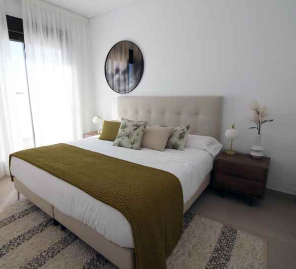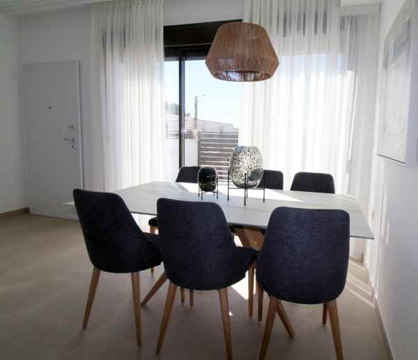 NYBYGGT PARHUS I PILAR DE LA HORADADA Nya moderna radhus byggda i en lugn del av Pilar de la Horadada med närhet till allt du behöver. Radhusen har 3 sovrum, 2 badrum, öppet kök, vardagsrum med direkt tillgång till det mysiga poolområdet, terrass på baksidan med parkeringsplats , terrass och stort solarium på taket. Pilar de la Horadada är en typisk spansk by i den sydligaste delen av Costa Blanca. På den stora huvudgatan finns stormarknader, massor av butiker, restauranger och barer och några vackra torg. De vackra stränderna Torre de la Horadada och Mil Palmeras med fin sand och strandpromenad ligger bara 5 minuter bort. Flygplatserna Corvera (Murcia) och Alicante ligger 40 respektive 55 minuter bort.