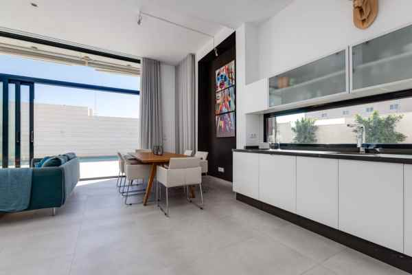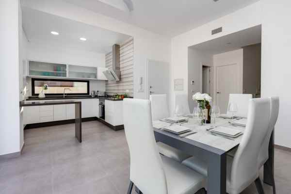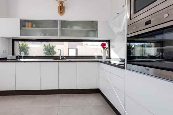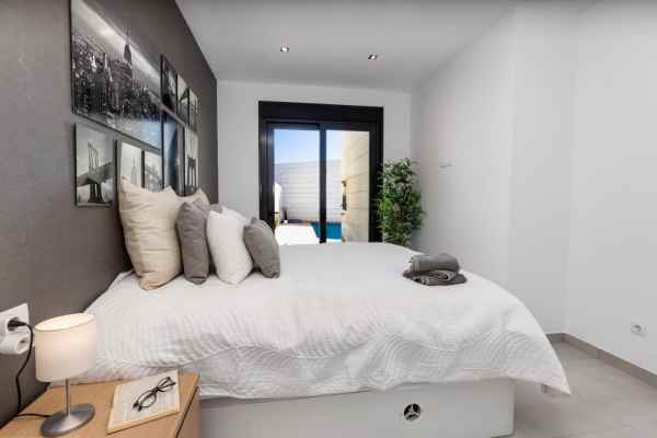 NYBYGGDA VILLOR I PILAR DE LA HORADADA Nybyggnation av 6 fristående villor i Pilar de la Horadada. Nybyggda villor på en nivå har 3 sovrum, 2 badrum, öppet kök med vardagsrum, inbyggda garderober, privat trädgård med parkeringsplats. Dessa fantastiska hus är täckta med natursten för minimalt underhåll, vardagsrummets dubbla höjd och stora fönster ger mycket naturligt ljus. Pilar de la Horadada är den sydligaste staden och kommunen på Costa Blanca i provinsen Alicante. Staden ligger på gränsen mellan Comunidad Valenciana och regionen Murcia. Pilar de la Horadada är en typisk spansk stad som ligger bara 2 km från kusten och de populära stränderna i Torre de la Horadada. I Pilar de la Horadadas centrum finns alla bekvämligheter: affärer, konditorier, banker etc. längs huvudgatan "Calle Mayor". Du kommer också att uppleva en underbar atmosfär nära den lokala kyrkan på "Plaza de la Iglesia" där det finns flera kaféer. I Pilar de la Horadada finns också ett välutvecklat nät av cykel- och vandringsleder, och det finns också ett stort utbud av olika sportaktiviteter. Lo Romero 18-håls golfbana ligger bara en kort bilresa från staden. Flygplatserna Corvera (Murcia) och Alicante ligger 40 respektive 55 minuter bort.