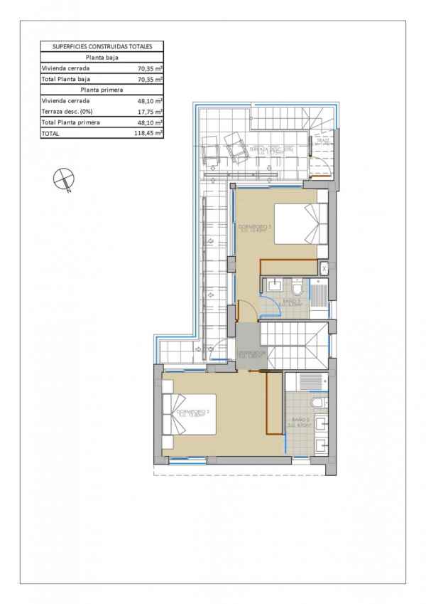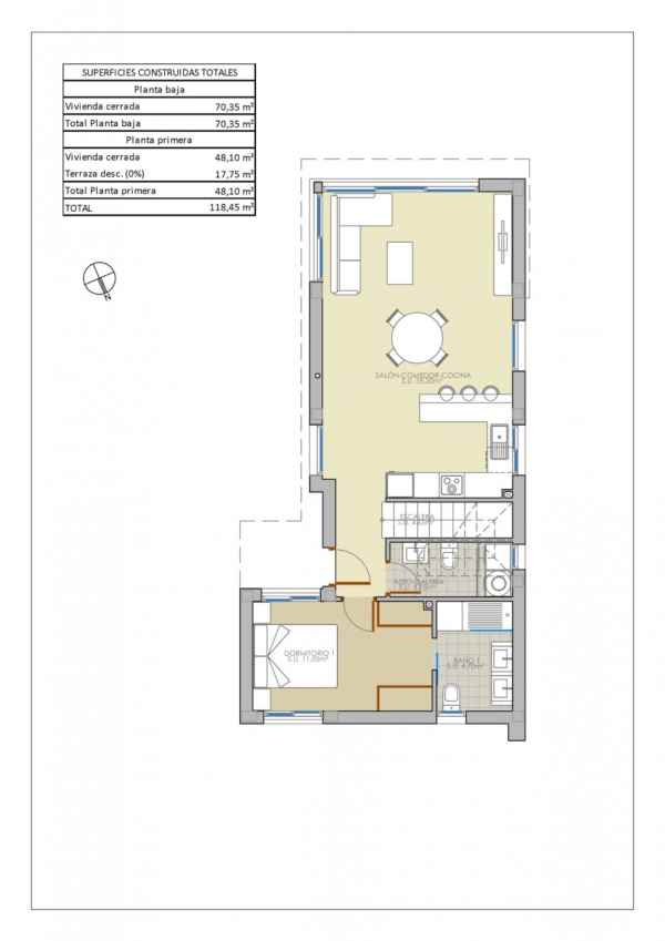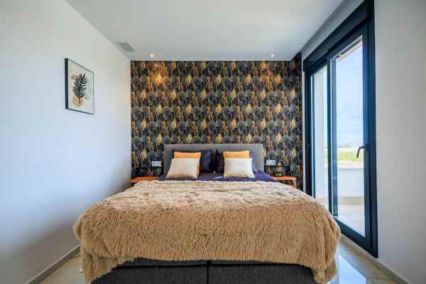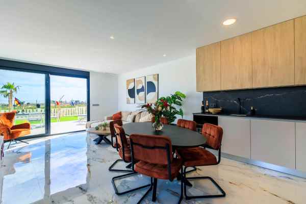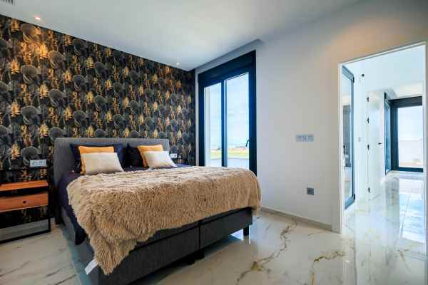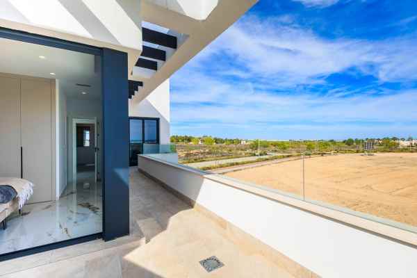 NYBYGGDA VILLOR I PILAR DE LA HORADADA PÅ GOLFBANAN Nybyggnation av ett exklusivt och lyxigt projekt med villor vid Lo Romero golfbanan i Pilar de la Horadada. Villor i New Build Community kommer att vara utmärkta hem för dig och din familj. Med en planlösning med tre sovrum och tre badrum, förutom sin 45 m2 stora terrass, kommer huset att ha alla typer av bekvämligheter för att göra din vistelse underbar. Det är bara 100 m från golfbanan och 5 min från nöjesställena, inklusive stranden, bara 6 km bort. Det har sydöstra orientering. Dessutom har den privat parkeringsplats och inbyggda garderober. Och inte nog med det, dessa villor har till ditt förfogande en gemensam pool, ett idealiskt område för grillning och en lounge utomhus för att koppla av. Pilar de la Horadada är en typisk spansk by i den sydligaste delen av Costa Blanca. På den stora huvudgatan finns stormarknader, massor av affärer, restauranger och barer och några vackra torg. De vackra stränderna Torre de la Horadada och Mil Palmeras med fin sandpromenad ligger bara 5 minuter bort. Lo Romero Golf är den perfekta banan för golfspelare som brinner för golf och Island of Golf är en idealisk bana för golfspelare på alla nivåer. Flygplatserna Corvera (Murcia) och Alicante ligger på 40 respektive 55 minuters avstånd.