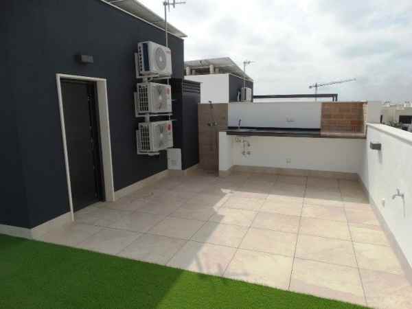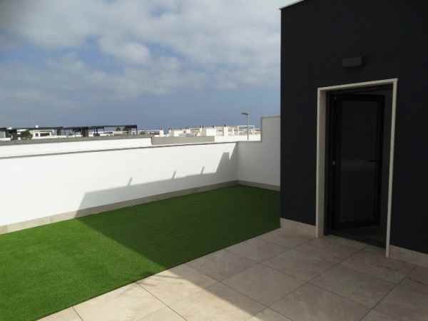 NYBYGGDA 4 PARHUS I PILAR DE LA HORADADA Nybyggda 4 parhusvillor i Pilar de la Horadada. Villor byggda på 2 våningar och har privat solarium, har 3 sovrum, 3 badrum, öppet kök med vardagsrum, trädgård med privat pool och parkeringsplats. Villor ligger några meter från alla tjänster och centrum. Pilar de la Horadada är en typisk spansk by i den sydligaste delen av Costa Blanca. På den stora huvudgatan finns stormarknader, många affärer, restauranger och barer och några vackra torg. De vackra stränderna Torre de la Horadada och Mil Palmeras med fin sandpromenad ligger bara 5 minuter bort. I Pilar de la Horadada finns också ett välutvecklat cykel- och promenadvägnät och det finns också ett stort utbud av olika sportaktiviteter. Lo Romero 18-håls golfbana ligger bara en kort bilresa från staden. Flygplatserna Corvera (Murcia) och Alicante ligger 40 respektive 55 minuter bort.