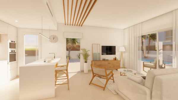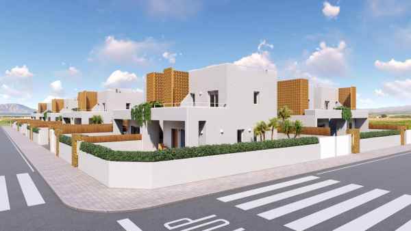 NYBYGGDA VILLOR I PILAR DE LA HORADADA Nybyggda villor i Pilar de la Horadada. Interiören i villorna består av 3 sovrum, 3 badrum med eget badrum, stort vardagsrum med öppen planlösning med kök, allt beläget på två våningar. Exteriörerna har en stor anlagd trädgård med privat pool och parkeringsplats. Nybyggda villor där du hittar den bästa medelhavsstilen anpassad till modern design. Residential består av 17 villor som ligger i Pilar de la Horadada, omgiven av all service du behöver och bara några minuter från stranden. Pilar de la Horadada är en typisk spansk by i den sydligaste delen av Costa Blanca. På den stora huvudgatan finns stormarknader, massor av affärer, restauranger och barer och några vackra torg. De vackra stränderna Torre de la Horadada och Mil Palmeras med fin sand och strandpromenad ligger bara 5 minuter bort. I Pilar de la Horadada finns också ett välutvecklat cykel- och vandringsvägnät och det finns också ett stort utbud av olika sportaktiviteter. Lo Romero 18-håls golfbana ligger bara en kort bilresa från staden. Flygplatserna Corvera (Murcia) och Alicante ligger 40 respektive 55 minuter bort.