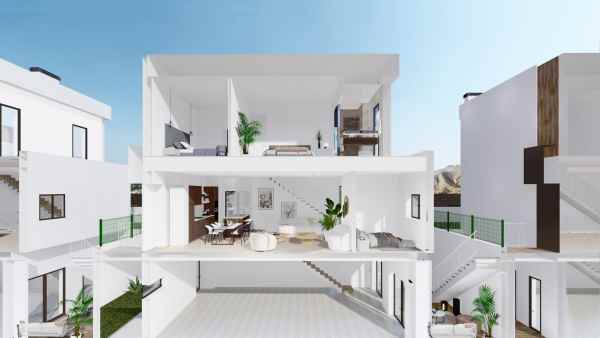 NYBYGGDA VILLOR I FINESTRAT Bostäder i moderna villor har utformats noggrant för att fånga skönheten i Sierra Cortina och Medelhavet i varje hörn. Villor bygga över 2 våningar och har 3 sovrum, 3 badrum, öppen planlösning kök med vardagsrum, bygga in garderober, utrustat kök, privat trädgård med pool och parkering. Bostäder belägna bredvid två golfbanor, temaparker, ett stort köpcentrum och några minuter från stränderna i Benidorm Finestrat ligger i Marina Baixa-regionen på Costa Blanca, nära grannstaden Benidorm och cirka 40 kilometer från staden Alicante och den internationella flygplatsen. Benidorm ligger bara fem minuters bilresa från fastigheterna och erbjuder alla tjänster du behöver, inklusive butiker, barer, restauranger, stormarknader, banker, apotek och flera privata internationella skolor. Nära till stränderna Levante, Poniente och Cala de Finestrat, med mer än 6 km längd som är bland de bästa i Europa som tilldelats av Europeiska unionen med blå flaggor. Alla fritidstjänster som temaparkerna Aqua Natura, Terra Mítica, Terra Natura, Aqualandia och Mundomar, Sierra Cortina och Villaitana Golfbanor, vandring och klättring i Puig Campana en ojämförlig naturmiljö eller njut av nautiska sporter.