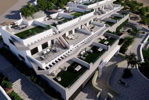 NYBYGGT BOSTADSOMRÅDE I FINESTRAT Nybyggt unikt och exklusivt bostadsområde med högt läge i Balcon de Finestrat. Detta komplex av moderna bungalows med 2 och 3 sovrum, alla med 2 badrum, kök med öppen planlösning med vardagsrum och matsal. Bungalower på översta våningen med privat solarium och bungalower på bottenvåningen med privat trädgård och möjlighet till privat pool mot en extra kostnad. Fastigheterna har massor av naturligt ljus och designerö i köket. Hiss i alla bostäder. Hållbar konstruktion med energicertifikat A. Varje fastighet har privat parkering. Gym för inomhusfitness. Bio-hälsosamt område för sport. Gemensam pool. LED-belysning inomhus och utomhus. Material och varumärken av hög kvalitet. Fastigheterna har tillgång till en stor pool och njuter av ett av de bästa lägena på Costa Blanca. Det är en fantastisk möjlighet och privilegium att kunna leva med denna miljö av golf och strand, nära till alla bekvämligheter av alla tjänster som anses vara en av de bästa platserna att investera. Finestrat ligger i Marina Baixa-regionen på Costa Blanca. Benidorm ligger bara fem minuters bilresa från fastigheterna och erbjuder alla tjänster du behöver, inklusive butiker, barer, restauranger, stormarknader, banker, apotek och flera privata internationella skolor. Nära till stränderna Levante, Poniente och Cala de Finestrat, med mer än 6 km längd som är bland de bästa i Europa som tilldelats av Europeiska unionen med blå flaggor. Alla fritidstjänster som temaparkerna Aqua Natura, Terra Mítica, Terra Natura, Aqualandia och Mundomar, Sierra Cortina och Villaitana Golfbanor, vandring och klättring i Puig Campana en ojämförlig naturlig miljö eller njut av nautiska sporter. Avstånd till havet 4 km, till flygplatsen 26 km och till golfbanan 1 km. Komplexet ligger 40 minuter från Alicante flygplats.