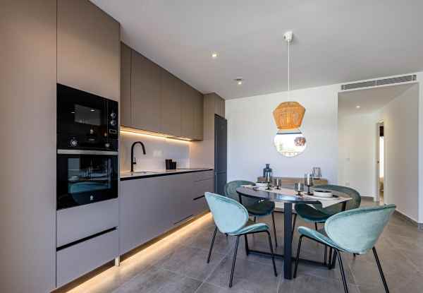 NYBYGGDA BOSTÄDER AV BUNGALOWLÄGENHETER I PILAR DE LA HORADADA Nybyggnation av ett exklusivt bostadsområde bestående av 22 bungalowlägenheter av högsta kvalitet med PORCELANOSA-finish i Pilar de la Horadada. Moderna bungalows med 2 sovrum, 2 badrum, öppet kök med vardagsrum, inbyggda garderober. Bostäderna på bottenvåningen har en stor trädgård som är färdigställd med konstgräs och på översta våningen kan du njuta av solen året runt på terrassen och solariumet, samt det gemensamma området med pool och en bekväm parkeringsplats. Pilar de la Horadada är en typisk spansk by i den sydligaste delen av Costa Blanca. På den stora huvudgatan finns stormarknader, massor av affärer, restauranger och barer och några vackra torg. De vackra stränderna Torre de la Horadada och Mil Palmeras med fin sandpromenad ligger bara 5 minuter bort. Flygplatserna Corvera (Murcia) och Alicante ligger 40 respektive 55 minuter bort.